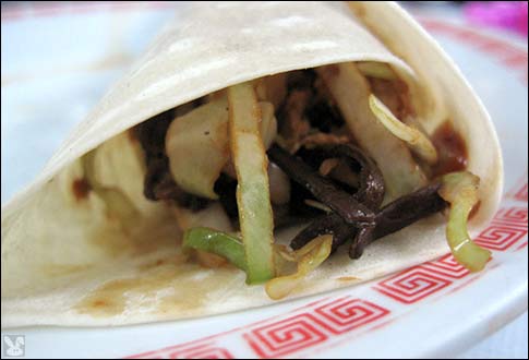 ... was accompanied by apologies for its tardy appearance. The plum sauce with scallions enhanced the bamboo shoot, cabbage, and egg mixture in this sea‘ritto. It was okay, but nothing to Moo about. By the time our (nothing special) broccoli with oyster sauce ($8.25) and rice arrived, we asked for it to be boxed up for the road. I felt bad for our waiter. He was bringing