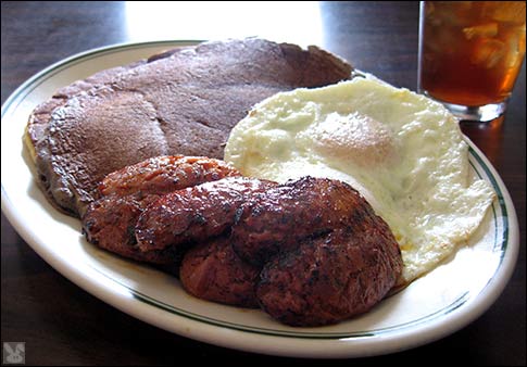 Chubby got in touch with his feminine side with a Cowgirl ($8.95): ... aka 2 pancakes, 2 eggs, and sausage. A multitude