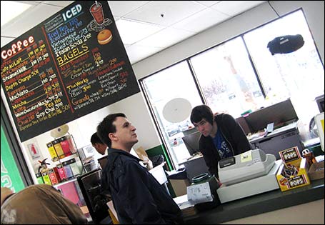 either; these are big, honkin’, rich bricks of chow. ... but there is one window counter with 4 stools.
