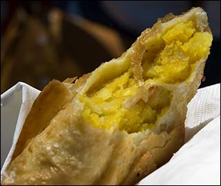 Most places were selling full meals but it would have been more enticing if they sold snacks and small bites to get people to try things in less committal increments that they might not ordinarily eat. I did find a few places to get individual items. Lanesplitter had slices of pizza for a buck each, I got a tasty chicken kabob for a fiver: ... and this samosa for $1. To be fair, it’s their inaugural event and I’m glad that they are generating some publicity for the local businesses. Maybe the next one will feel more unified.