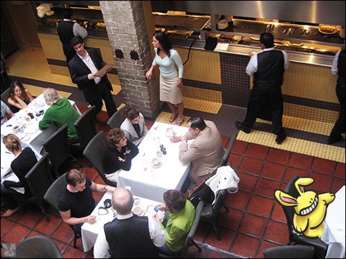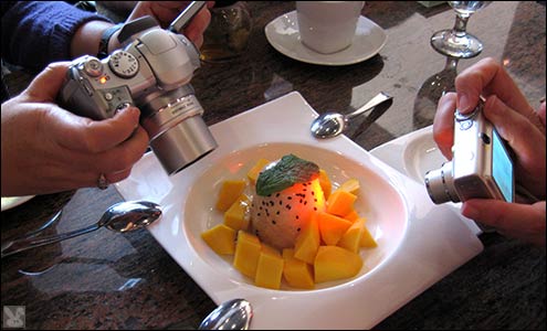 The occupational safety and heath administration aka OSHA hasn’t gone into the restaurant business. Perhaps the owners of OSHA Thai chose the name to instill a feeling of security or maybe it’s because Worker’s Comp. Thai doesn’t have the same ring to it. Whatever the case, when you get together for lunch with other food bloggers, it’s like paparazzi for chow. How many bloggers does it take to photograph a dessert of Sticky Rice with Mango ($4.95)? ...we reflected on how odd it was that we were given chopsticks. Maybe they got a lot of requests from customers who think all Asians eat the same. We shared a bunch of dishes which were all good. Another was the Roasted Duck Curry ($9.95): ... but nothing that blew our collective