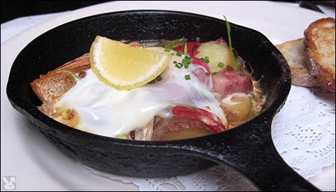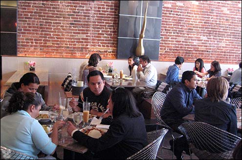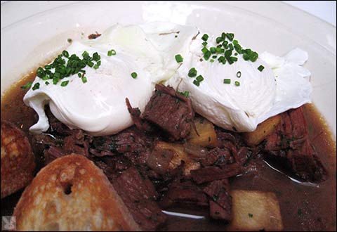 sopping up with the pain next to the pan. Perfectly poached eggs topped with freshly snipped chives hovered above a meaty terrain. Sadly, the beef brisket was a little bland and was lacking the crispy bits that normally make even a low-brow hash delightful. The eggs and sourdough toast consoled me, and I’m hoping this was just a fluke from a place that I really love to eat. (Roll over the image above to see how bustling the place can be.)