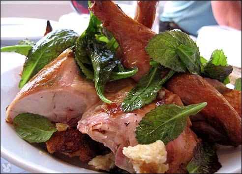 ... with bread salad, currants and pine nuts fell short tonight. The meat was deliciously moist and flavorful, but the seasoning and bread salad was out of balance. Normally, there is a pronounced vinegar tang in the salad, the bread was mushy without that nice rough texture here and there for added interest. It was okay, I guess it can’t be perfect all the time.