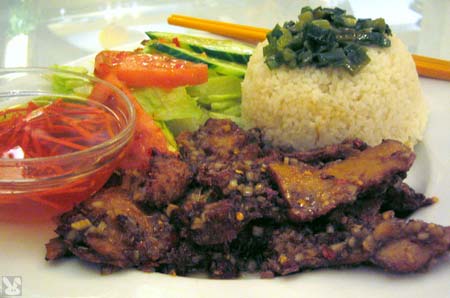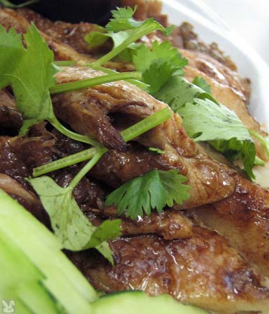trying to get dooced? made up for my “vegetarian” chicken last week. I called in my order at Vietnam 2 and they had it ready to take away minutes later, when I arrived. It’s nicely charred exterior and five spice rubbed skin was tasty over the metric ton of rice that you get with this dish. It’s not as wonderfully addictive as their catfish hotpot, but it’s just the thing if you are in a fowl mood. Vietnam 2
