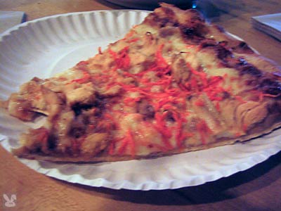 The wood burning pizza oven made it too hot to sit inside, so I took my Cannondale Pizza ($12.50): ...to one of the freshly