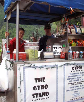 Much apologies for the lack of an entry yesterday. I was up 'till after 2 and my eyes had smoke coming out of their sockets. I know that excuses are stupid, but here's the story: I try to catch a bunch of films on Labor Day weekend in the little town of Telluride, Colorado: So far I've seen Phillip Seymour Hoffman deliver a Oscar nom. Worthy performance in Capote. Sadly, the pacing of the film lags, but PSH is so good it helps make up for it. Conversations with Other Women stars Helena Bonham-Carter and is a film entirely in split screen. She's good but this is a little too gimmick based to me (although they do a good job in the execution, it gets a little heavy for me stylistically.) Edmond is a film that feels a little sluggish, but is made interesting by a fantastic performance by William H. Macy. One thing I love about coming out here is that you have to endure a bit of airport food. This definitely increases my appreciation of the good chow that is normally steps away. You are a captive audience to culinary wonders such as this breakfast bagel. Somehow they manage to take the simplest of ingredients and screw all of them up. Bad bread, ham and these “eggs” which are really not eggs at all, but some chemical effluent from an industrial tub: ![]() The last film that I've seen here, or rather half a film (I walked out) is called Three Times is a Taiwanese picture that isn't 3 times, but about 30 times too long for its content, which consists of practically nothing. This film makes yesterday's bagel look like a chef's menu at the French Laundry. I'm sure that there are some crazed super-geniuses at the festival that think that it's the ultimate in cinema and is much better than the more “conventional” movies that actually say something and have things happen in them, but they only think so because their heads are up their asses. Telluride has some good food but it ain't the Bay Area. I like to grab something quick and eat it in the ever-present festival lines. Standing in lines is one of the most fun aspects of the festival, but since typing in line isn't one of the funnest parts (and I'm doing that now) we can talk about that tomorrow. -G |