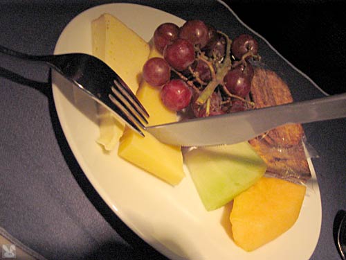 I knew we were in bad shape when our delayed flight took off at the time that our connecting flight did in Denver. This meant taking the late flight back to the Bay Area. Chubby and Eyeball slept most of the way, but I stayed up and marveled at the anti-terrorist snack. You get 2 sturdy metal