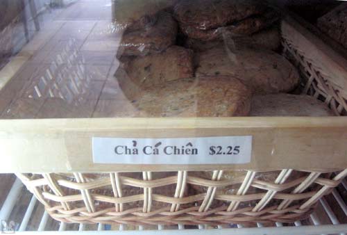 Faked out again Cha Ca Chien $2.25: Well, they looked to me like chocolate chip cookies and they share the same initials too (CCC) so I pulled one out of the basket. Hmmm, it's a little limp and the plastic is a little greasy feeling. I take it to the counter of the Vietnamese shop and say, “cookie?” She suppresses a laugh and says, “fish cake.” Hmmm.. doesn't sound like a good dessert to me. This melon cake ($2.50): ...was 100% fish free. A flaky, light pastry encases a faintly sweetened winter melon filling. Much better than eating a greasy fish patty. Golden Gate Bakery saves the day. Check out Chubby's page about shopping at Golden Gate Bakery here.