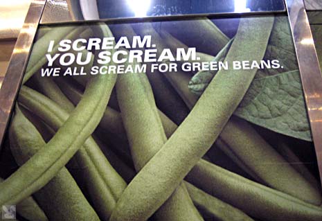 Express What marketing whiz came up with this advertising campaign: ...and what planet do they live on and can they please stay there?? Not only does this suggest that our craving for ice cream can be assuaged by some healthy legumes (a scientifically proven, physical impossibility) but it suggests that a billboard will get us all pepped up about doing so. I have one thing to say to the twisted mind that extruded this advertisement for crazy - no ice cream for you!