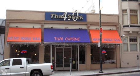 I have been weary about trying Thai Stick 4.0 but took the plunge today and had Pad Thai with prawns and broccoli ($8.95.): The rice noodles in tamarind sauce , tofu, ground peanuts and nice crispy sprouts combined to make a normal, garden variety Pad Thai (if you have a magical garden that grows thai entrees.) What perplexes me about Thai Stick 4.0 is it's name. Is it a software version of a high quality depressant? Can I upgrade my Pad Thai to the next version if it has too many bugs or crashes? I've noticed that Asian restaurants in the Tenderloin that have televisions put them on the Animal Planet channel so that diners watch raccoons perform wacky antics. I guess it makes sense. Not only do all the shows on this channel work without sound, they are kid friendly and may accidentally help you decide on what kind of meat to order.