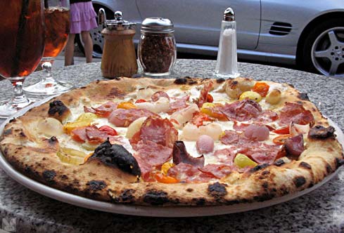 vacated sidewalk tables and dug into my thin-crusted dinner.