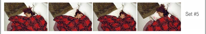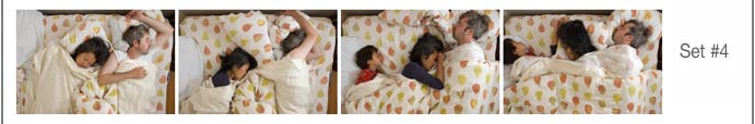 comments: If you spend 8 hours a day sleeping, that would mean that one third of your entire life you're asleep. Many of us who are living our lives right spend even more time in the sack. But how well documented is this single activity that we spend more of our lives doing than any other? Not well, until now. Photographer and renowned late-sleeper David Ichioka has concentrated on this important part of everyone's life in his series of Sleep Pictures. These are time-lapse series of pictures which document one whole night's sleep. Each picture is taken 20-30 minutes after the last. Some of the sets are of couples sleeping, some of singles. Some people sleep with their pets. Children sometimes sleep upside down. Pictures of people sleeping capture them totally unguarded, there is no posing, no being self-conscious. The photos are a combination of being totally set-up, yet totally candid. The pix are lit by electronic flash usually bounced off of a wall or ceiling, sometimes bounced off an umbrella. Each set is taken in the home of its models, they are sleeping in their own beds. It looks like everyone sleeps differently, though most have some degree of similarity. To see some of the magazines that these pix have been published in, click HERE. If you would like to contact David Ichioka, he can be reached at "davidbli@yahoo.com" |