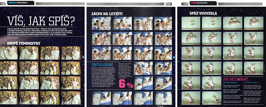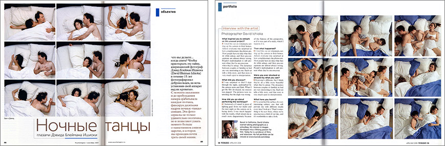 Return to David Ichioka photo galleries | The Sleep Pix have been featured ...in a lot of media, both dead-tree based and online. Issue #10 of Impracabeza online magazine, which features cutting-edge artists from around the world, has a section devoted to David Ichioka's work. A few of the traditional media magazines that have carried them are listed here: |