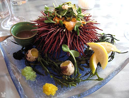 Uni ($20.00) was served with greens, enoki mushrooms, tobiko, quail eggs and vinaigrette. This was exceedingly good in what amounted to an impeccably fresh sea urchin roe salad. The yuzu, black and wasabi tobiko added a mild citrus, salty and peppery crunch and the raw quail eggs and vinaigrette pulled all the elements together with a robe of rich and tangy flavors. | |||||||||||||||||||||||||||||||||||||||||
