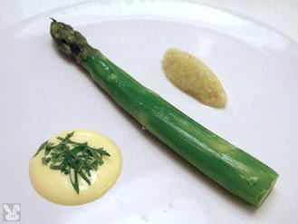 | Asparagus was served two ways both cooked and raw with a dot of meyer lemon sabayon. | |||||||||||||||||||||||||||||||||||||||||||||||||||||||||||||||||