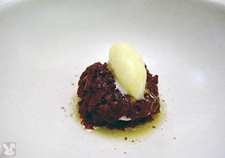 | There were nice crispy bits on the shell of the marrow bone and beet gelee capped off with some osetra caviar. This was a fun and unexpected combo of surf, turf and sub turf | |||||||||||||||||||||||||||||||||||||||||||||||||||||||||||||||||