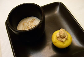 | We were instructed to down a shotglass of mandarin soda with juniper berry gelee in one gulp. It was a refreshing hazingesque moment sans humiliation or a "hi Bob" cue. | |||||||||||||||||||||||||||||||||||||||||||||||||||||||||||||||||