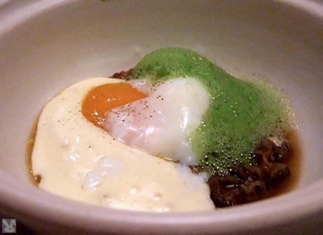 | 45 minutes sounds like a long time to cook an egg, but when it's slow and low the results can be delish. Morels are hidden in a broth beneath some beaten spuds and ramp foam. | |||||||||||||||||||||||||||||||||||||||||||||||||||||||||||||||||