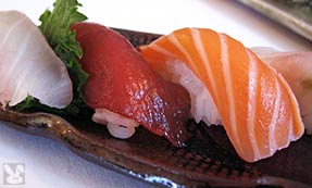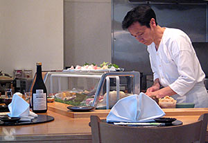 Atmosphere: If you are interested in an intimate dining experience, this tiny restaurant is for you. Its white walls, simple tables and minimalist décor turn to focus toward the food. There are 3 small tables and 5 seats at the sushi bar, so make a rezzie. Service: Naka san does all the cooking and there is one person tending to everything else. They do a great job of keeping their customers happily fed. |