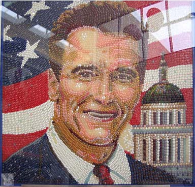 A giant jelly bean mosaic of Arnold Schwarzenegger greets you as you wait for the walking tour to begin. You can also enjoy a collection of Ronald Regan photos... or not. | ||||||||||||||||||||||||||||