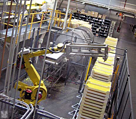 There are lots of robots at work. They don't do a perfect job and a lot of candy spills on the floor. This candy goes to farmers to feed their hogs. |