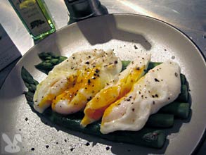 | Here are some Sun Farms eggs poached over asparagus with truffle oil and pepper. The yolks break open to create a sauce for this dish. | |||||||||||||||||||
